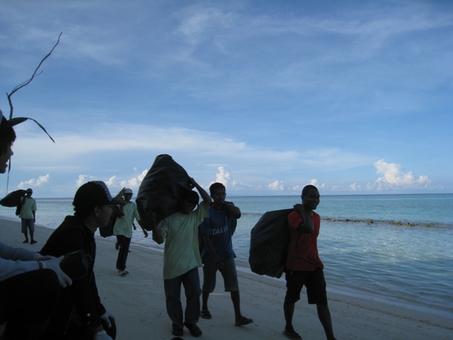 We made two groups, one per direction, second meeting at the other side of the island to check who had the biggest bag and then back to Pom Pom Resort.
