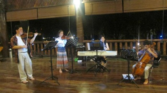 The New Year party in Pom Pom started with a  celebrity group: Yap Ling family.They gladdened our customers during the aperitif and the dinners with classical music from their violins, viola, piano and cello.