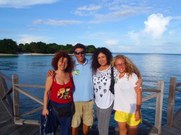 Friendly & Cheerful ladies from Italy check in today, Fefe & Ele welcomed them at the Jetty, I believe they will find the nature beauty and true relaxations here in Pom Pom ! フレンドリーで元気いっぱいのイタリアンゲストが今日はチェックイン。フェフェとエレが桟橋でお出迎えしたのよ。きっとポンポン島の自然の美しさ、そして真のリラクゼーションをお楽しみいただけると思うわ!