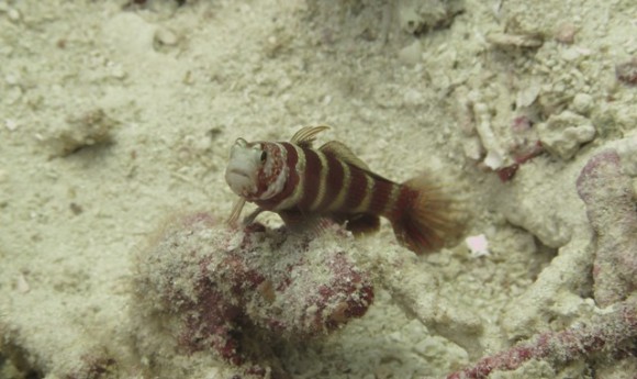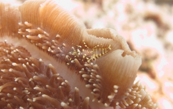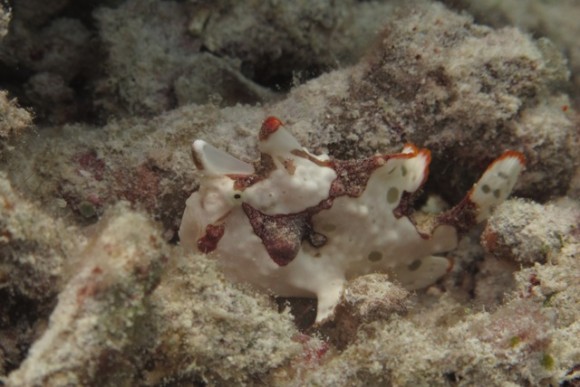 At the “safety stop”, I was in 5 meters and swimming around a rock. At that moment I saw a little white with green spotted thing. I looked it carefully and ….I said: Yes!!!! It’s My favorite fish, Clown Frog Fish!!