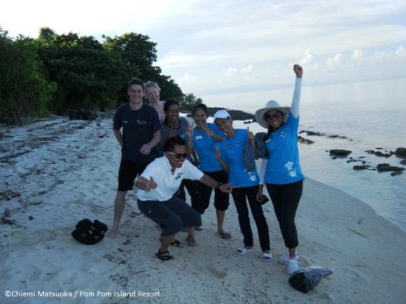And last night we had Hawksbill turtle come and laid eggs around the area that we cleaned yesterday afternoon. This is the first Hawksbill turtle landed in Pom Pom Island for this year. She laid 150 turtle eggs in total. Hopefully there will be more turtle landing soon!!