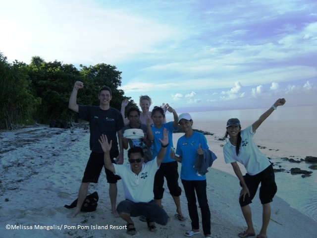 And last night we had Hawksbill turtle come and laid eggs around the area that we cleaned yesterday afternoon. This is the first Hawksbill turtle landed in Pom Pom Island for this year. She laid 150 turtle eggs in total. Hopefully there will be more turtle landing soon!!