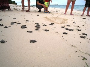 Just last week, we are very busy with baby turtles born from our hatchery. 4 nests release baby turtle back to the sea with 1 of them hawksbill turtle nest and the rest green turtle nest.