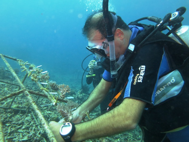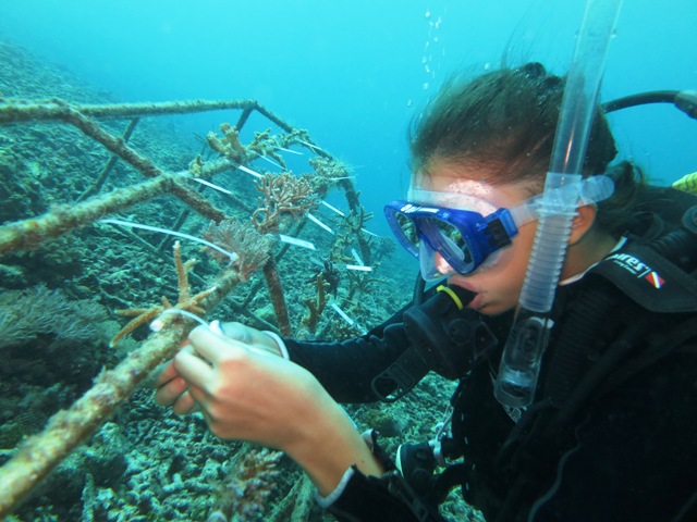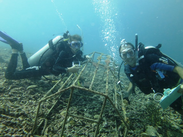 Both of them were really good in planting the corals. Anna Cristina doing the coral measurement whiles her father Gian Luca cut the excessive cable tie.Before end the dive, we visit the 2 bundles of tyre that successful inhibit many kinds of living organisms. We saw ornate ghost pipefish, leaf fish, bumphead parrotfish, hinge beak shrimp, banded boxer shrimp, nudibranch, sea turtles and many more!