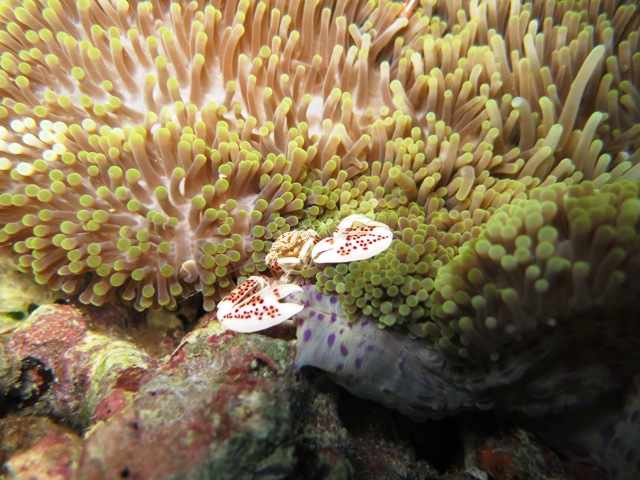 This time we saw many things underwater such as Green turtle, Hawksbill turtle, stone fish, scorpion fish, eggs of nudibranch, nudi’s, zebra moray eel, clouded moray eel, crocodile fish, porcelain crab on the anemone and of course beautiful corals.