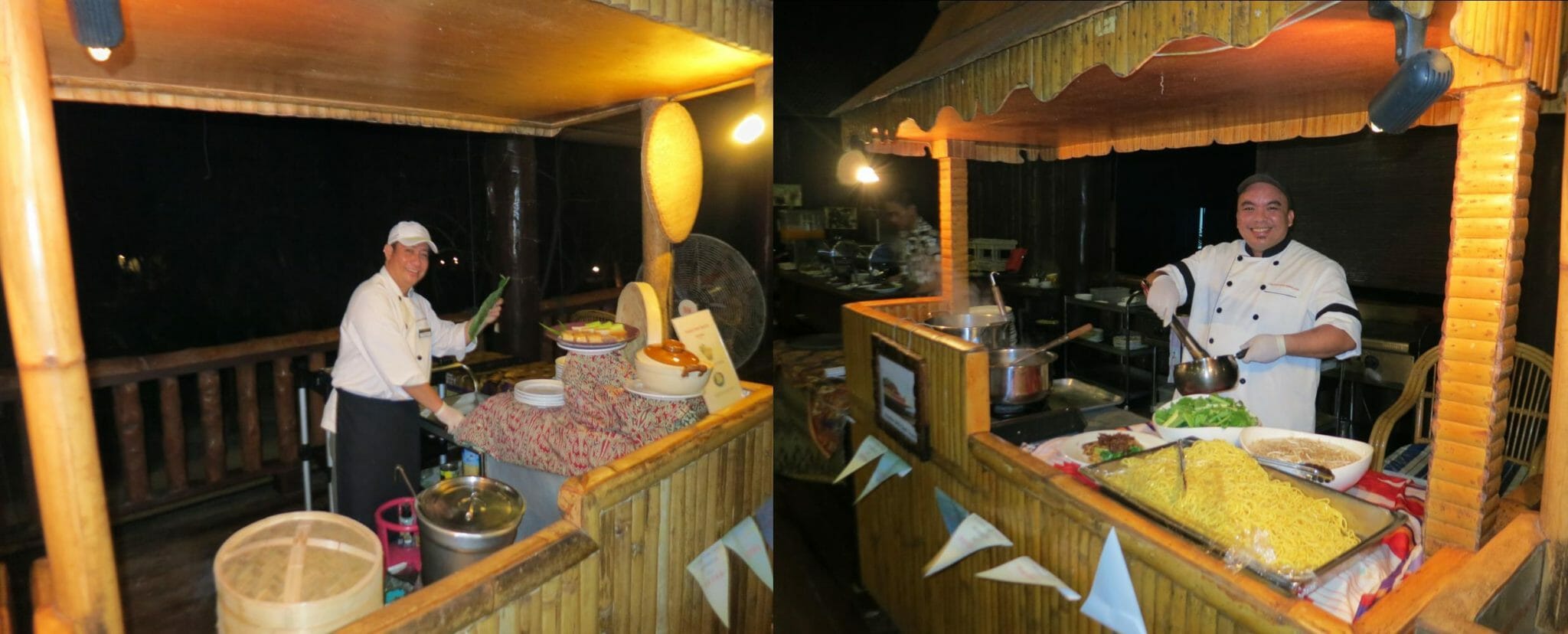 In the evening, The live cooking station opened in two corners to serve the local noodles and traditional cakes.