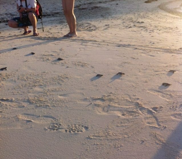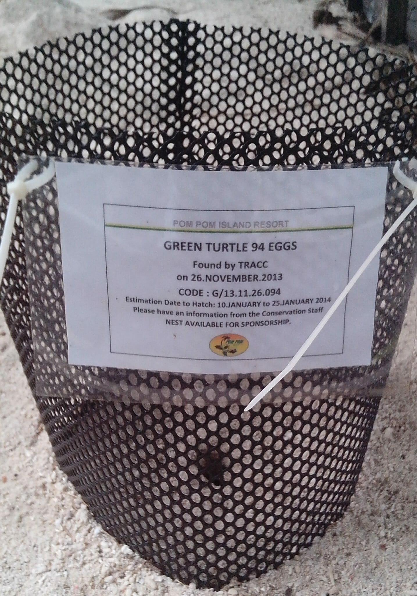 One green turtle has crawled up the beach of Pom Pom Island one fine night last year to lay her eggs. It was exactly eight days before the New Year countdown of 2014! Lay the eggs she did and it was a total of 94 eggs! These eggs officially became the last batch of sea turtle eggs for 2013 in Pom Pom Island. We then relocated all 94 eggs to our very own Turtle Hatchery at Pom Pom Island Resort, safe and sound. After almost two months of waiting.. and waiting… and waiting for the baby emergence.. pop.. finally on its 52nd day (17/01/2014).. we discovered the sign!