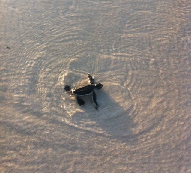 The night of the same day, 86 baby turtle actively ‘boiled up’ from the nest and officially become the first newborn batch of 2014! It was a romantic sight to behold for two of our honeymooner guests who passed by and lucky enough to share the beautiful moment. We let the babies slept in a dark and cool room for a night before we release them to the sea.