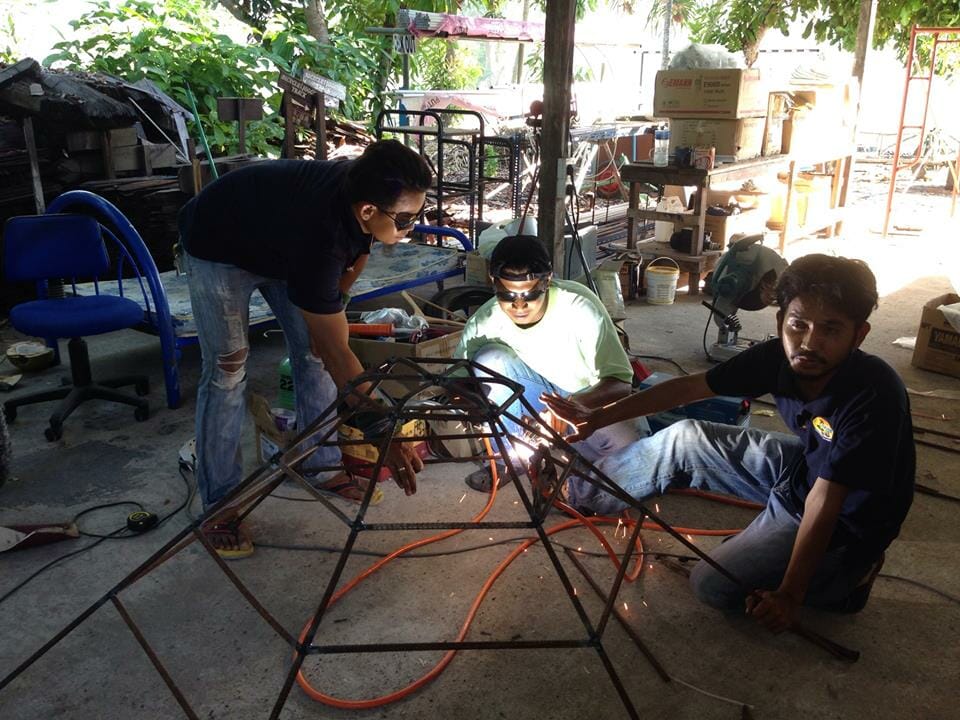 With the help from the technical staff, they created the metal frame by bending and welding the metal concrete to a design that been proposed.