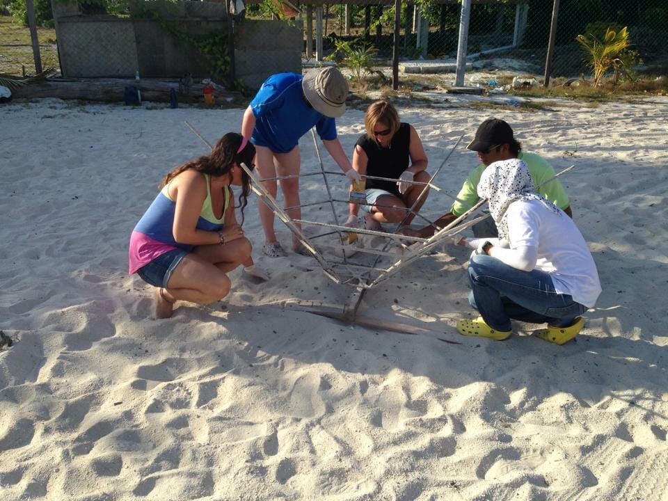 Last week we have our repeater guest from Sweden in the house. They are three of them, Matts, Sofia and their wonderful daughter, Anaise. They are very keen on the conservation activity in Pom Pom. They even never missed the daily awareness talk. Anaise also did the Marine Biologist dive with our Resident Marine Biologist, Melissa. Because of their concern to the environment and would like to be part of the solution, they decided to take a small steps by adopt a reef in Pom Pom and named it Anaise Reef. Since the family stayed in Pom Pom for 2 weeks, they had the experienced to make the coral frame.
