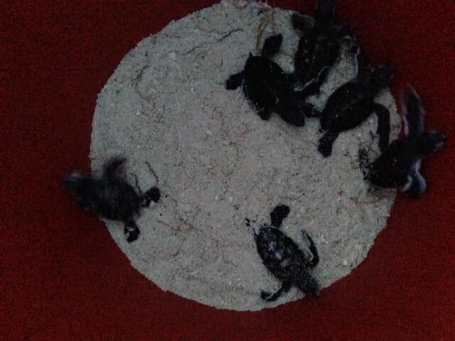 Today of 23 December, Patricia found some more baby turtles which were still alive in the nest. These green turtles are the last hatching of the 2014 !