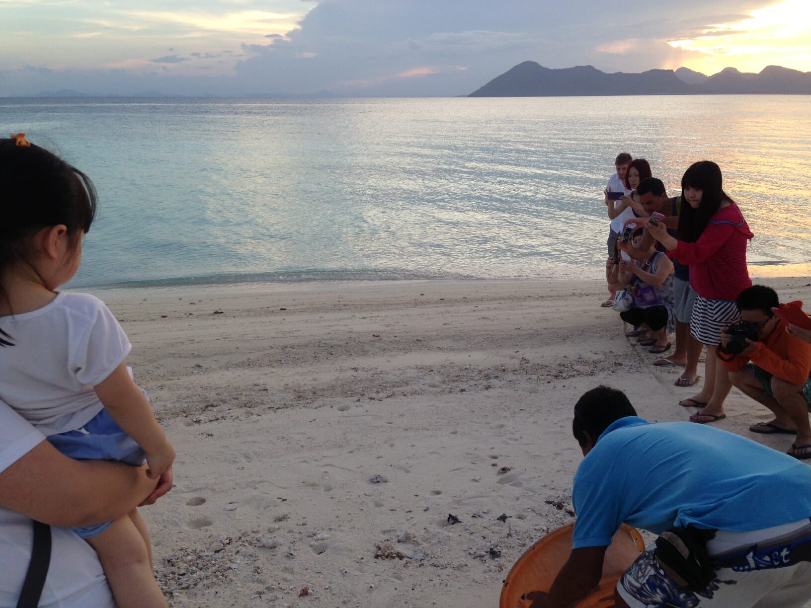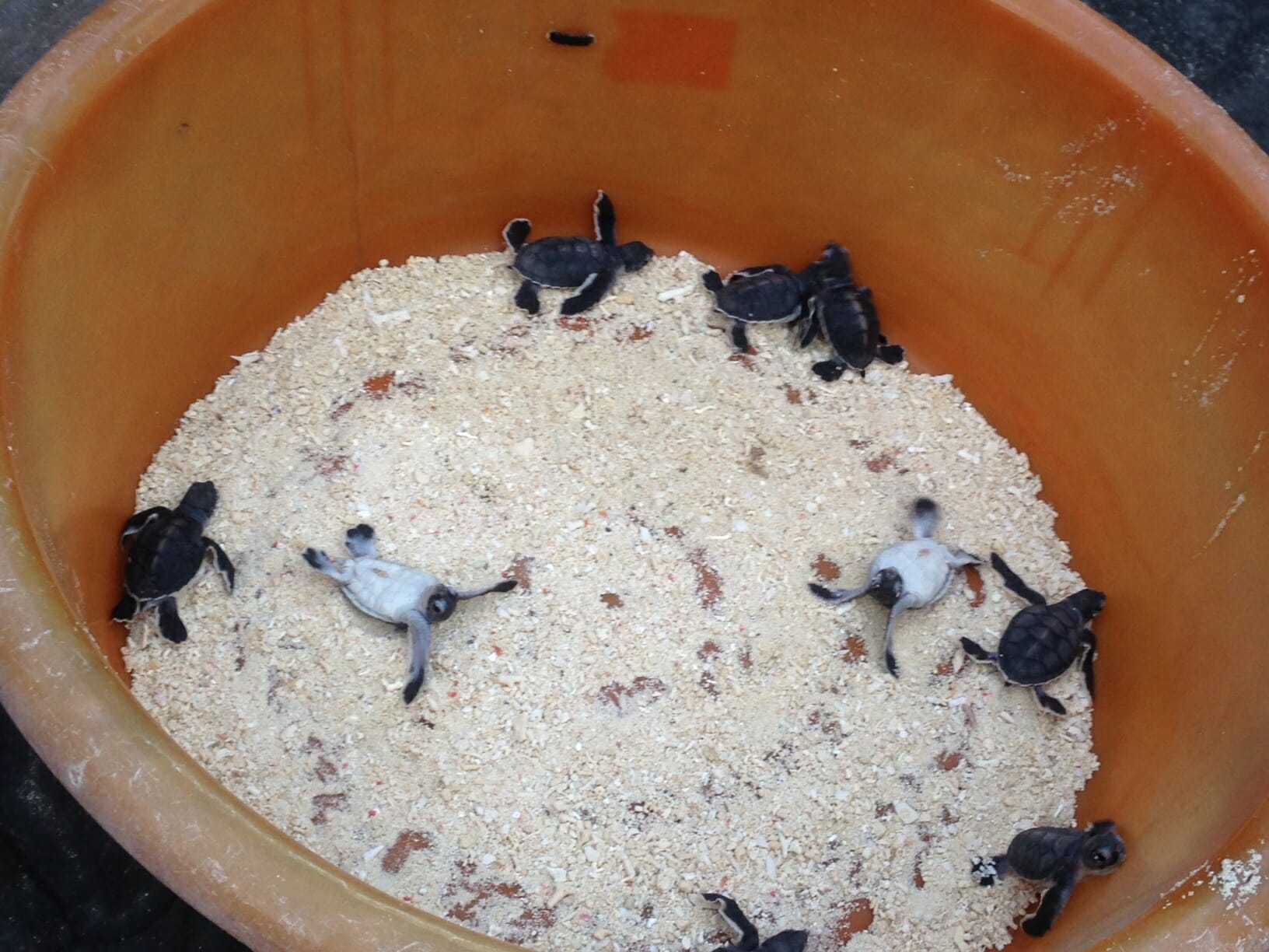 At 6 pm, we transfer the baby turtles to the beach and released to the sea.