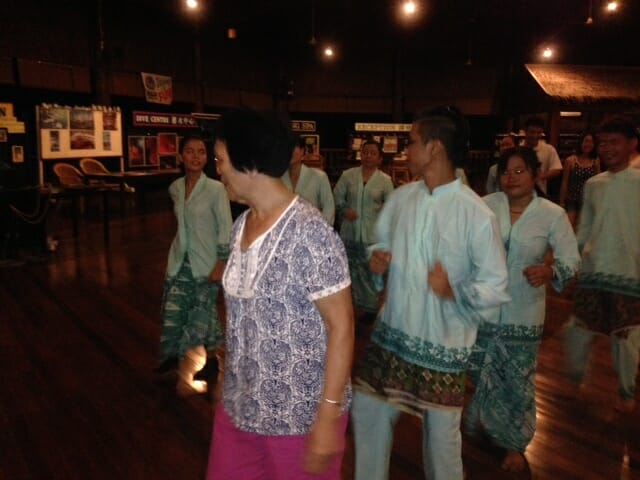 7月17日晚上 邦邦岛为大家准备了特别的舞蹈表演,都是由邦邦 客房服务的工作人员和办公室工作人员呈现,所穿的传统服装都是由Mosia经理手工制成的。
