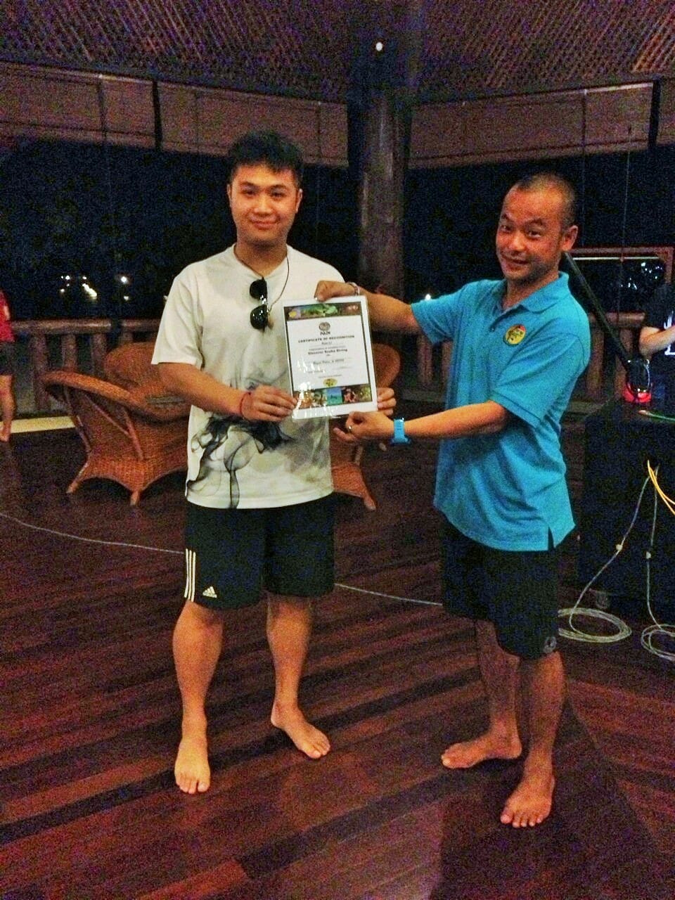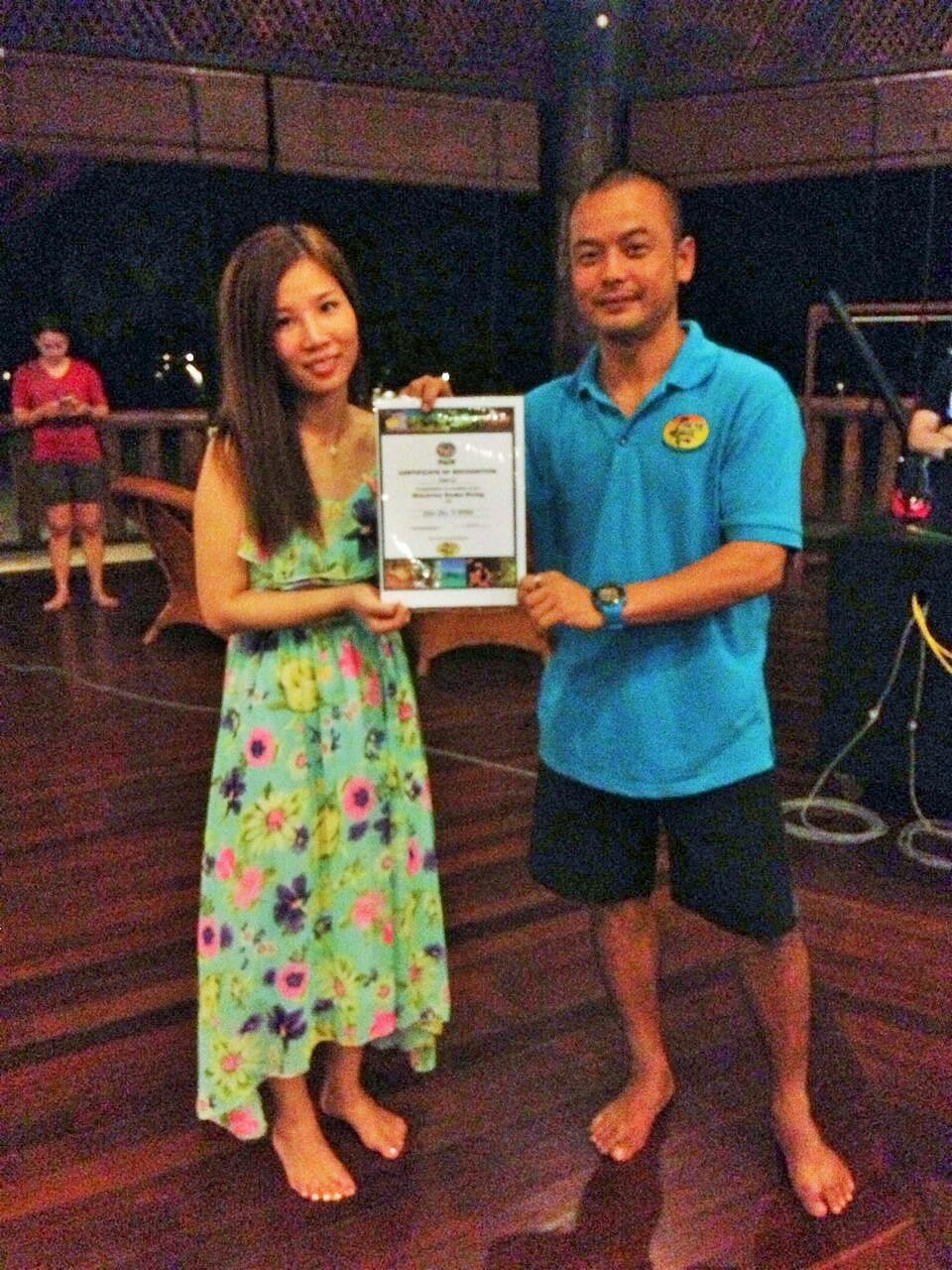 In the 2nd session, the certificates were given to the guests from Dive Instructor : Calvin for their first experience of Diving !