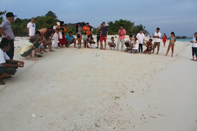 Hawksbill baby turtles were born just on time at their arrival as like they welcoming the group.