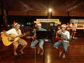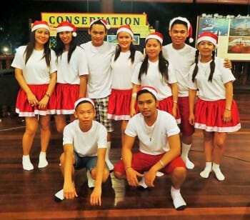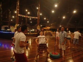 12月13日邦邦岛工作人员安排了一些游戏与舞蹈演出,并邀请所有客人一起参与。
